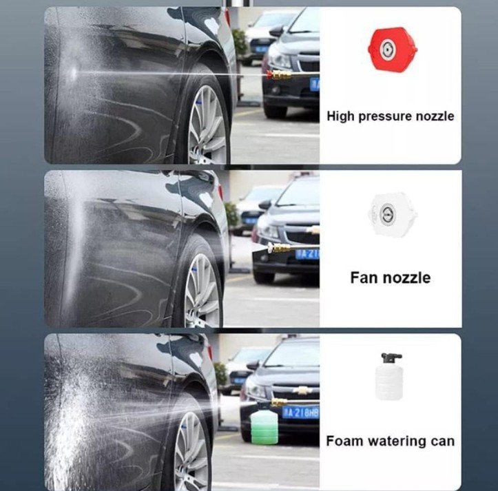 - 2 in 1 multi-function nozzle - Our high pressure washer features the adjustable nozzle: 0°, 40° slant direction, foam jetting or 0° heavy flow. Multiple spray nozzle lets you switch between varying degrees of water stream intensity that lets you easily and quickly clean all your outdoor spaces and gear. This car pressure washers make your cleaning more convenient than others with interchangeable nozzles