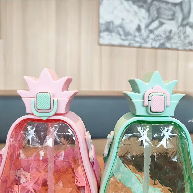 Pineapple Water Bottle With Straw & Rope 600 ML