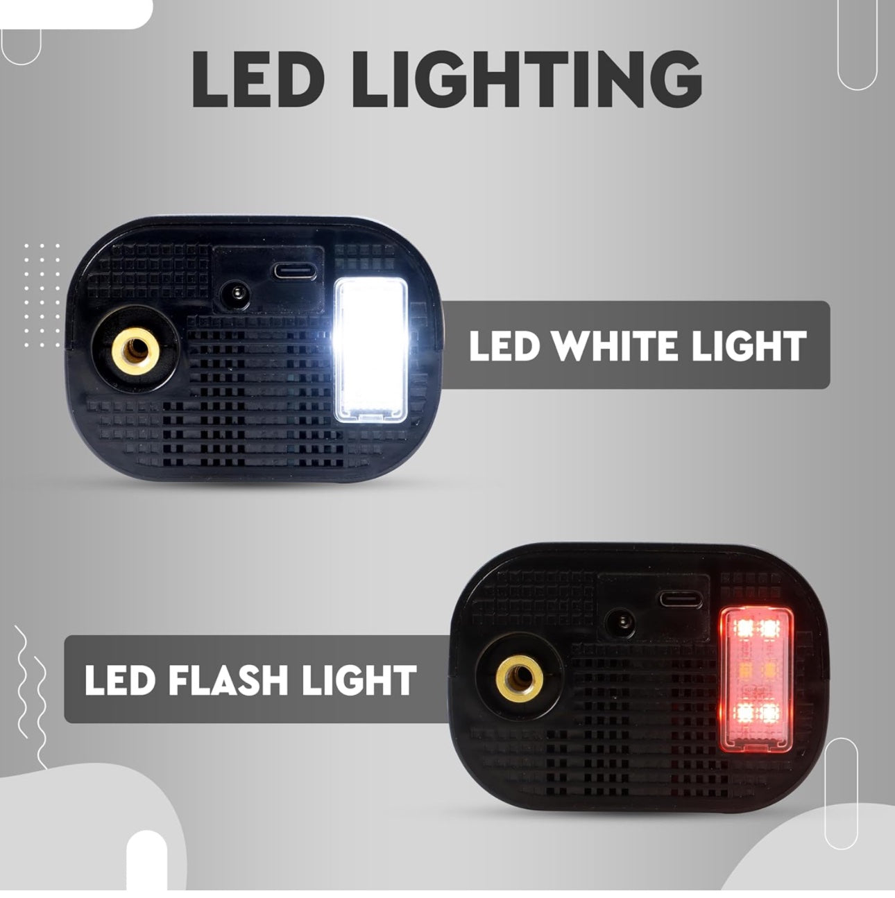 • Additional Wired Option: The Tyre Inflator comes with dual option of operating it with wire as well. This feature is very useful for saving from the risk of discharged situation. If battery gets discharged, it can be plugged in and played anytime.