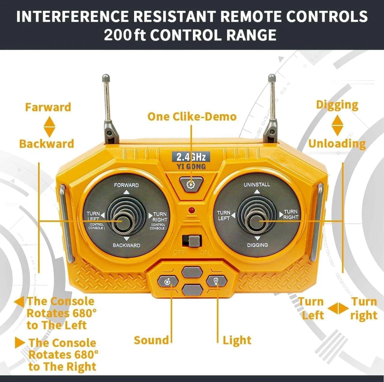 - [POWERFUL & FLEXIBLE] : With built-in 11 channel, 2.4 GHz and a wireless infrared remote control, you can easily control this excavator toy to go in any direction. Moving forward, turning left, digging, rotating and unloading, there are more combinations of operation waiting for you to explore!