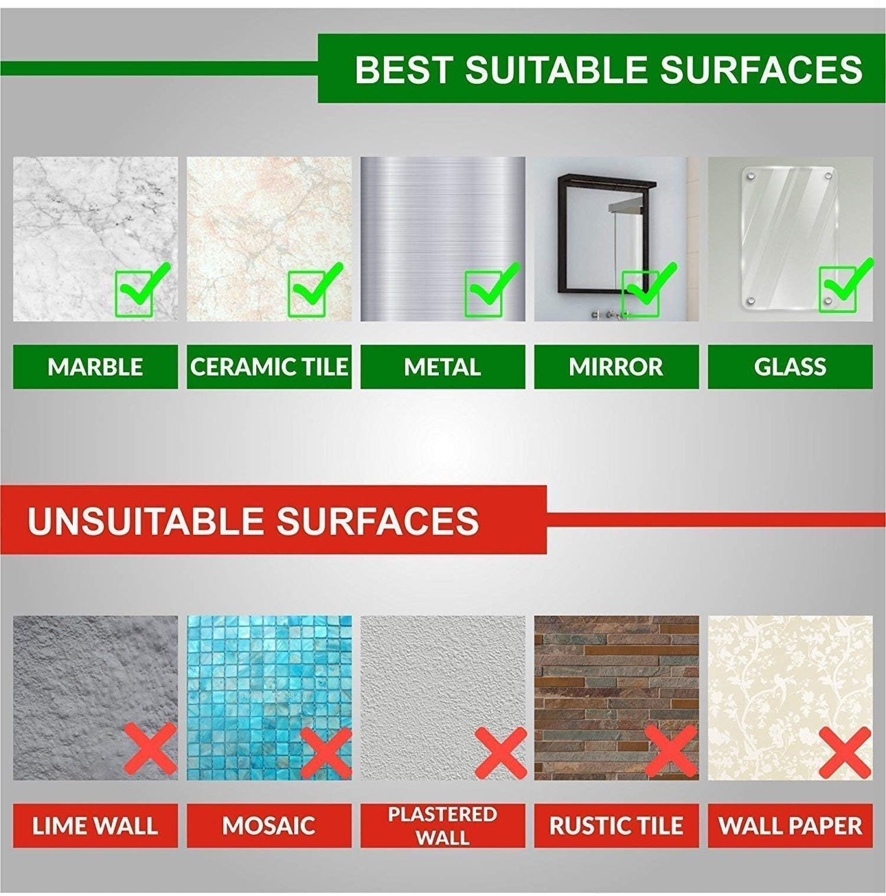 nHARMLESS : Soap holder shower has no nails, no drillings, no screws. The soap dish holder is harmless on your smooth walls and can cleanly and easily be removed.